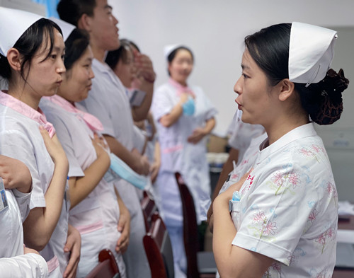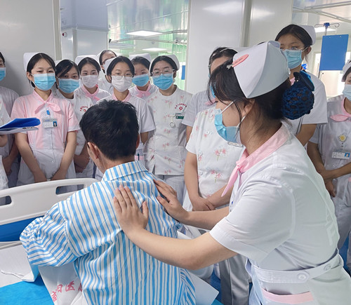 陳英總護士長指出病房是培養(yǎng)實習生的最好講堂,培養(yǎng)實習生臨床思維能力的最好途徑是床旁教學。教學查房的最終落腳點是患者,從某種意義上來說,患者也就是一本生動的教科書,教學查房是打開這本書的鑰匙,也是提升學生臨床思維能力的重要手段。