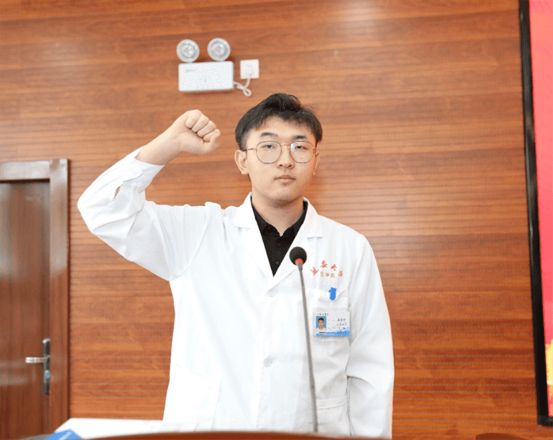 武樂樂同學代表全體學生進行發言,她號召全體見習生,在新的環境下要繼續發揚延安大學的艱苦奮斗精神,不斷加強自我修養,提高品格,培養自主學習和獨立思考解決問題的能力,圓滿完成見習期間的各項任務。張登科同學帶領全體見習生誦讀《醫學生誓言》,莊嚴、堅毅的宣誓聲充分展示了他們的精神風貌和踐行醫者使命的決心。