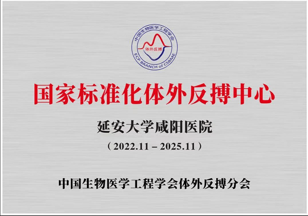 2022年10月20日,中國生物醫學工程體外反搏分會公布首批申報“國家標準化體外反搏中心”的78家單位經過資格審查、組織專家評審和臨時調研等程序,其中50家申報單位獲得“國家標準化體外反搏中心”認證,陜西省僅3家單位獲得認證,延安大學咸陽醫院位列其中。