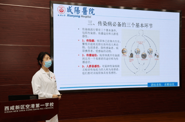 隨著春季的到來,環(huán)境中的細菌,病毒也隨之活躍繁殖,呼吸道和消化道類傳染病均迎來了高發(fā)期。兒童作為易感人群,發(fā)病率高,且受疾病影響大,因此對疾病的預(yù)防和控制工作顯得尤為重要。3月9日延安大學(xué)咸陽醫(yī)院聯(lián)合空港新城底張衛(wèi)生院前往空港新城第一學(xué)校開展了預(yù)防春季常見傳染病的健康教育知識講座。本次活動由宣傳部袁騰科長帶隊,感染控制辦公室李金燕主管主講,共計200余名師生及后勤人員參加此次講座。