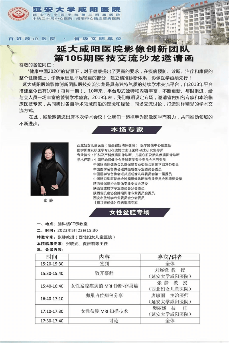 鍥而舍之,朽木不折,鍥而不舍,金石可鏤。延安大學咸陽醫院影像創新團隊的醫技交流沙龍是一個具有獨特氣質的持續學術交流平臺,自2011年平臺以來,不斷探索平臺形式和學習內容,與時俱進,建立了臨床與醫技之間相互溝通與交流的橋梁,帶來了生動且實用的學術盛宴。十年多以來,我們每月一次,每期設定專場,邀請省內知名影像專家、本院臨床醫技專家,共同研討醫學影像領域前沿的理念和經驗,同場交流討論,提高對不同疾病臨床、影像的認識,打造別樣精彩的學術交流方式。