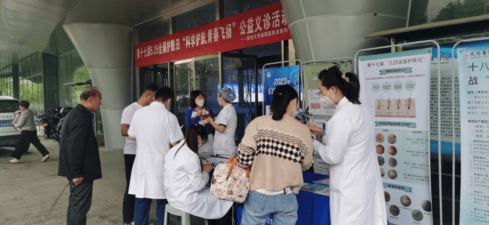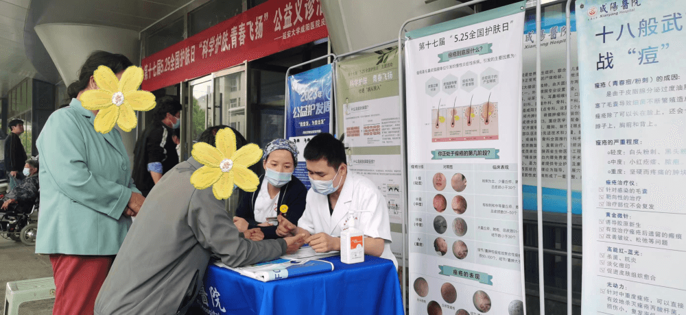 今年是第十七屆5·25全國護膚日,為加強公眾對皮膚健康的重視與認知,延安大學咸陽醫院皮膚科主任陳小艷團隊,在我院外科樓一樓舉辦“科學護膚·青春飛揚”全國皮膚護膚日義診活動,為廣大皮膚病患者及咨詢人員進行現場免費診療。