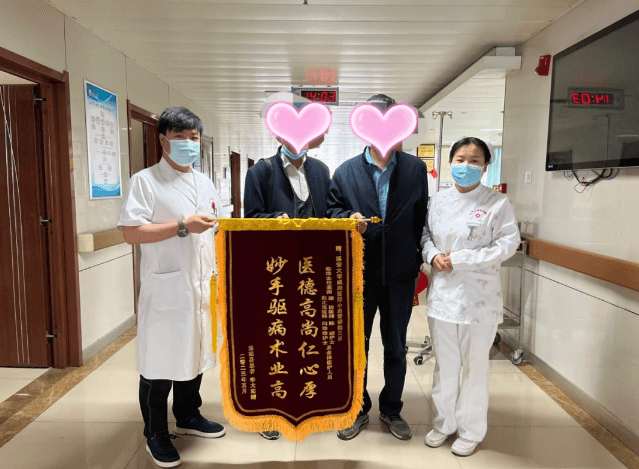 近日,出院一個月的李大爺及家屬來院復診,并且親手送上了一面鮮紅的錦旗:“醫德高尚仁心厚、妙手驅病術業高”以表感激之情。