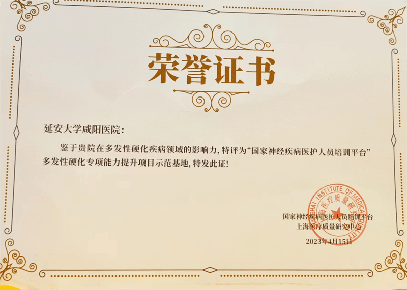 近日,由國家衛(wèi)健委醫(yī)政司指導(dǎo),國家神經(jīng)病醫(yī)學(xué)中心聯(lián)合上海醫(yī)療質(zhì)量研究中心開展了國家神經(jīng)疾病醫(yī)護人員培訓(xùn)平臺多發(fā)性硬化專項能力培訓(xùn)項目,首批授予全國21家醫(yī)院為“國家神經(jīng)疾病醫(yī)護人員培訓(xùn)平臺多發(fā)性硬化專項能力提升示范基地”。延安大學(xué)咸陽醫(yī)院榜上有名,成為西北地區(qū)首個國家神經(jīng)疾病醫(yī)護人員培訓(xùn)平臺多發(fā)性硬化專項培訓(xùn)基地。