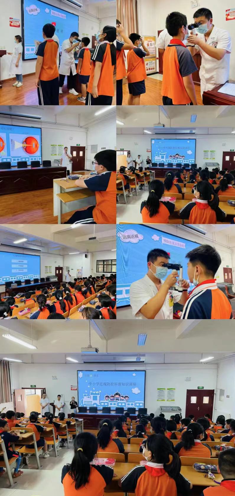 《“十四五”全國眼健康規劃(2021-2025年)》指出重點關注兩類人群,一老一小。兒童青少年近視已成為我國視力損傷的主要原因,本次活動我們以“走進校園”為主題,專家團隊分別在文林幼兒園、秦漢新城渭柳學校開展科普講座及視力篩查。活動期間,醫護人員通過精心制作的動畫宣傳眼睛小知識、科學用眼習慣、保護眼睛健康等科普內容,讓幼兒園小朋友及學生了解了正確用眼的相關知識,受到老師和家長的一致好評。尤其是活動中和幼兒園的小朋友們完美互動,小朋友們在愉悅的氛圍中,不僅了解了科學用眼的有效方法和習慣,哪些習慣對眼睛不好不能做,怎樣保護我們的小眼睛,吃什么對我們的眼睛好,還和護士阿姨一起做《眼睛保健操》。孩子們天真無邪的笑容、認真而又開心的臉龐、專注而又稚嫩的動作,感染了在場的每一個人。隨后,醫生對視力篩查異常的學生進行了進一步檢查,詳細介紹防盲治盲項目內容,重點講解怎樣預防近視、保護眼睛。