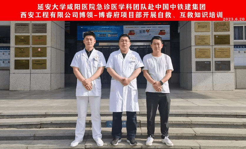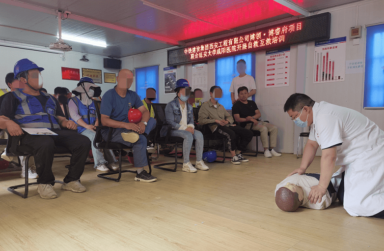 為進一步提高建筑工人的安全防范意識,化解突發重大風險,將意外傷害最小化,2023年6月20日,延安大學咸陽醫院急診醫學科醫護團隊走進中國中鐵建設西安工程有限公司博領---博睿府項目部,為全體工友帶來一場以“救在身邊”為主題的健康教育活動,此次健康教育活動旨在豐富工人急救知識的儲備,提升危急時刻的應急能力。