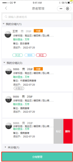 醫生可為患者設置診斷標簽,對患者進行分類管理,分類批量群發信息。系統還可按照診斷自動匹配隨訪計劃,減少隨訪醫生的重復性操作,提升隨訪工作效率。