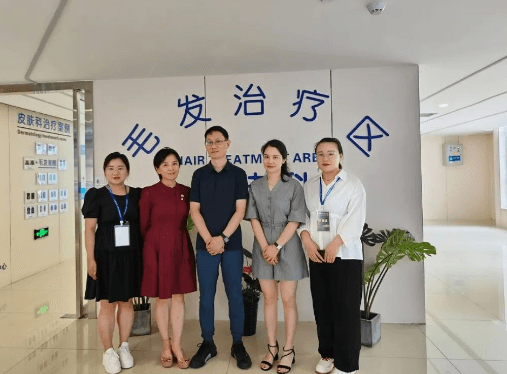 2023年8月4日,中西醫結合學會毛發醫學巡講期間,上海交通大學醫學院附屬第九人民醫院劉清教授、同濟大學附屬東方醫院李宇飛教授、北京同仁醫院魏愛華教授、重慶醫科大學第二附屬醫院趙恒光教授、貴州省人民醫院江蕾微教授等,在陳小艷主任的帶領下參觀了我院皮膚科。陳主任及全體皮膚科醫護人員對幾位專家的到來表示熱烈歡迎,一同帶領各位專家參觀了科室毛發治療區、中醫治療區、激光面部治療區及皮膚科門診手術室等。期間陳小艷主任講述了皮膚科的發展歷程,將科室在建設過程中曾經踩過的坑、走過的彎路以及發展思路、先進的管理模式等經驗都向參觀人員進行了生動的講解。各位教授還就科室管理、基礎設施建設、特色學科培育、醫療水平提升、科室品牌建設等方面進行了深入探討,并且交流了前沿的治療手段和典型案例,現場氣氛十分熱烈。