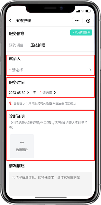 2、選擇所需的護理項目