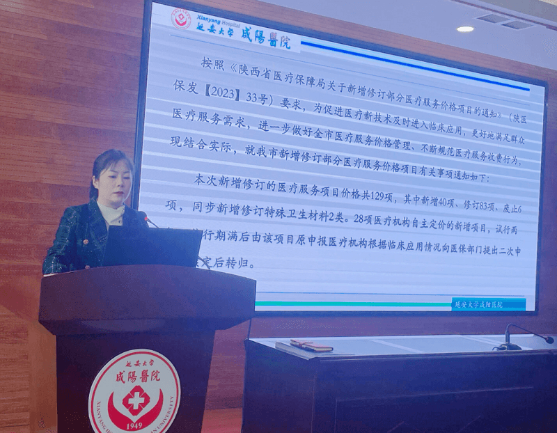 接下來,醫(yī)保管理部魏敏主管對參會人員進行醫(yī)療服務價格相關培訓。首先對醫(yī)療服務價格管理政策和相關要求進行解讀,其次對價格監(jiān)管中常見問題進行答疑、服務項目申報管理問題進行講解,并要求臨床科室進一步加強對患者的費用核查,認真研讀收費政策,熟悉和掌握收費價格,努力提高醫(yī)療質(zhì)量,為患者提供更加優(yōu)質(zhì)的醫(yī)療服務。