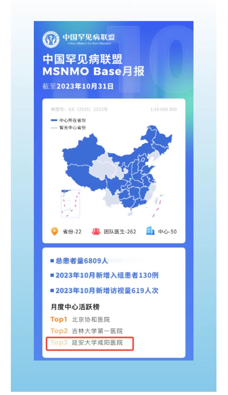 近日從中國罕見病聯盟月報中獲悉,延安大學咸陽醫院在月度中心活躍榜中位居第三。
