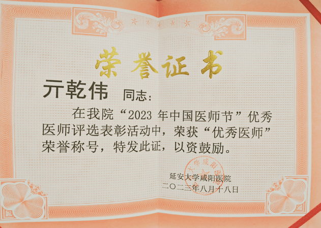 亓乾偉,延安大學咸陽醫院神經外科一病區責任總、副主任醫師、碩士研究生、醫院優秀醫師、優秀代教老師。曾在北京海軍總醫院進修學習,熟練掌握腦立體定向活檢術及腦立體定向治療技術。不問收獲,只問耕耘,在院內率先開展神經內鏡腦出血手術,該手術較常規腦出血開顱手術創傷更小,更多更好地保留了患者的神經功能。在2023年3月參加的國家繼續教育神經內鏡治療腦出血培訓班中,亓乾偉在實操比賽環節榮獲第一名。