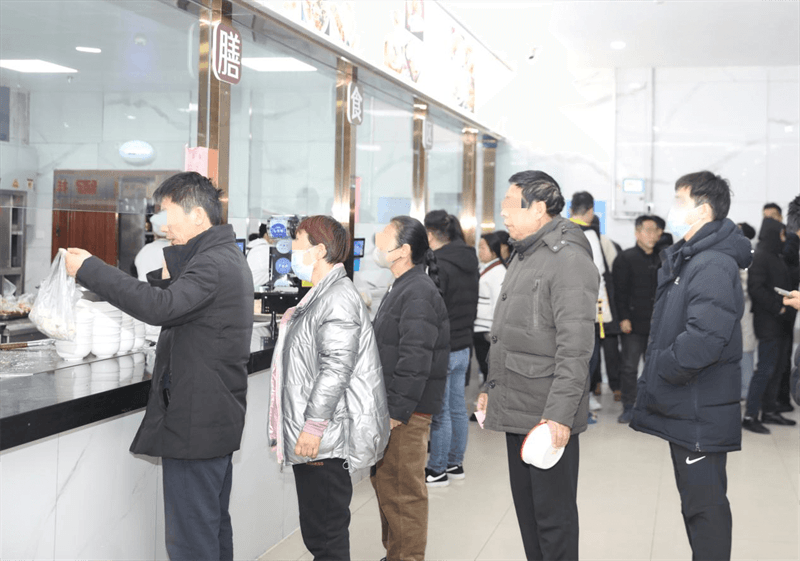 凌晨4:00,當大多數(shù)人還在甜美的夢鄉(xiāng)中時,醫(yī)院餐廳的工作人員已經(jīng)忙碌起來,他們正在為在院的2000多名患者和醫(yī)護人員準備新年第一餐。6:30,營養(yǎng)餐廳已經(jīng)排起了隊,患者及家屬紛紛帶著餐具和醫(yī)院發(fā)放的免費餐券來到窗口領(lǐng)取餃子。