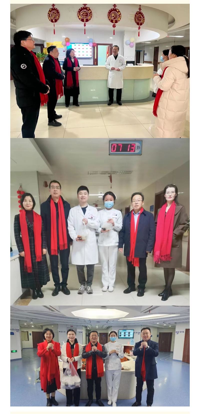 “新年快樂!”“大家辛苦了!”在給大家送上新年祝福的同時,院領(lǐng)導向堅守一線的醫(yī)護人員表示感謝,并囑托大家一定抓好質(zhì)量和安全,為患者做好診療服務。醫(yī)護人員紛紛表示,“請領(lǐng)導放心,我們一定不辱使命”。