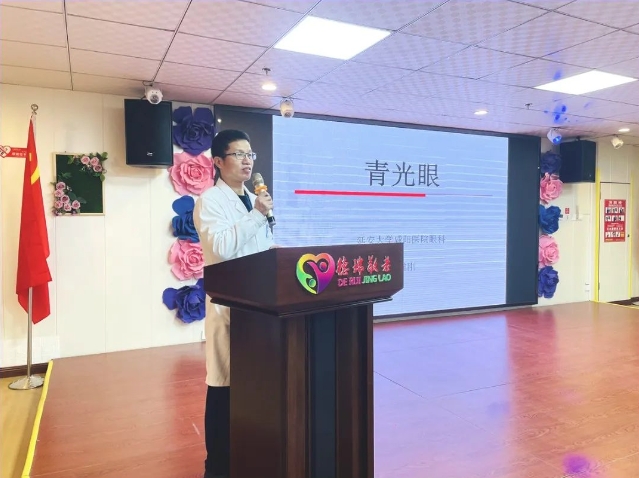 隨后,眼科楊維剛副主任醫(yī)師通過多媒體課件進行了青光眼科普講座。他講到青光眼青光眼是由于不同原因所導致的特殊的視神經(jīng)退行性改變,并有視野缺損等視功能改變的一類疾病。眼壓升高是其主要的危險因素。青光眼是全球首位不可逆性致盲性眼病,僅我國就有2000萬青光眼患者,致盲人數(shù)達567萬。這是一種全年齡疾病的表現(xiàn),尤其是40歲以上的人群更容易受到其影響。如果不及時診治,可能會導致不可逆轉(zhuǎn)的視野缺損、視神經(jīng)萎縮、視力下降,甚至導致完全失明,對于老年人,眼睛疾病的早篩查、早診斷、早治療非常重要。