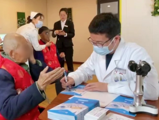 科普講座結(jié)束后,眼科醫(yī)護團隊各司其職,為各位老人分別檢查視力、測量眼壓,楊維剛醫(yī)師還通過裂隙燈、檢眼鏡為老人們進行眼底檢查,對每位老人的檢查結(jié)果進行詳細講解,提供診療意見和日常生活指導,并耐心解答老人們提出的保健問題,現(xiàn)場歡聲一片,受到敬老院護理員及老人們的一致好評!