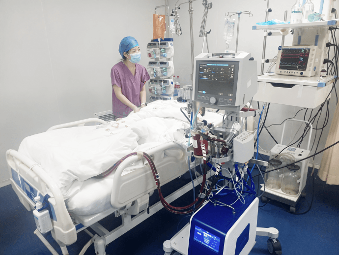 ECMO(Extracorporeal Membrane Oxygenation)又稱體外膜肺,是一種醫療急救設備,主要包括血管內插管、連接管、動力泵(人工心臟)、氧合器(人工肺)、供氧管、監測系統等部分組成。ECMO能暫時代替人體的心臟和肺功能,為重癥心肺功能衰竭患者提供持續的體外呼吸與循環支持,為重患者贏得搶救時間。