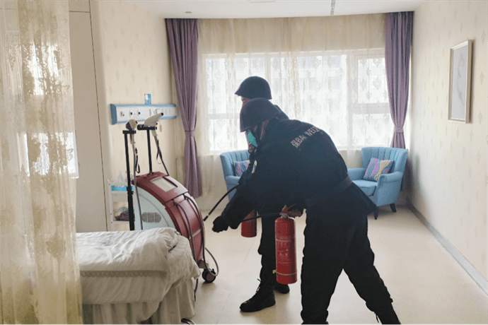 當班醫生就近取出滅火器,前往VIP2室查看火勢,進行滅火。