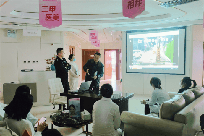 科主任黃蕾講述了醫療美容科每天是如何防范安全隱患,每日下班人員將各自負責區域關水關電拔插座鎖門并在群里進行打卡,防范于未然。