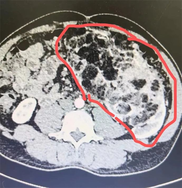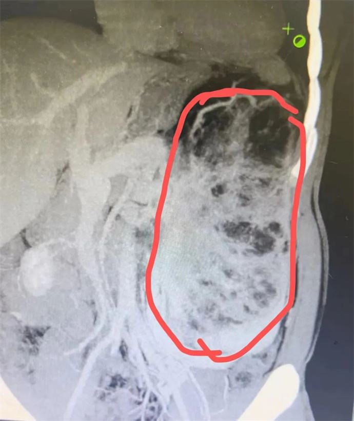 近日,我院泌尿外科會診一位四十多歲男性患者時發現,該患者腹部有一巨大腫瘤,直徑近30cm,已將該患者胃、胰腺、脾臟及部分腸管擠壓移位,且腫瘤內可見大量動靜脈畸形,存在極大的出血風險,一旦出血將危及患者生命,客觀告知患者及家屬相關病情后,患者及家屬憂心忡忡,基本的日常活動都心有畏懼,充分溝通后,轉入泌尿外科,擬行手術治療。