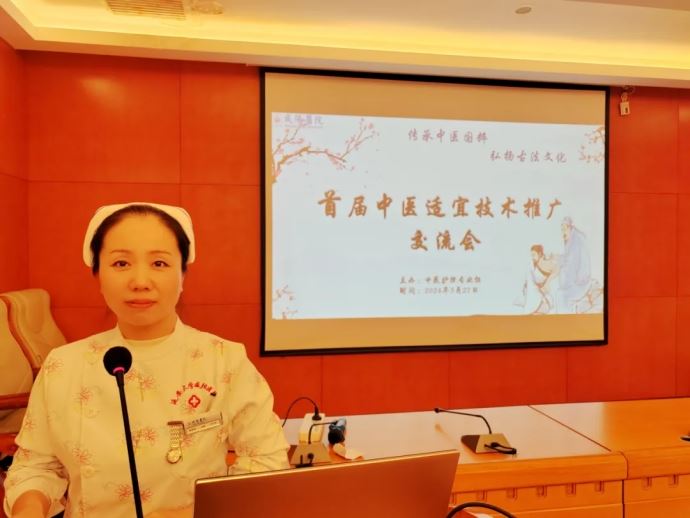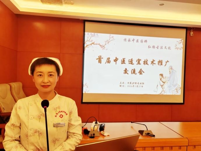 為響應國家關于《進一步改善護理服務行動計劃(2023-2025年)》文件號召,滿足人民群眾的健康需求,發揮中醫護理特色與優勢,推廣中醫適宜技術,培養中醫護理專業人才。2024年3月27日下午14時,以“傳承中醫國粹 弘揚古法文化”為主題的首屆中醫適宜技術交流會在我院心臟樓第一學術廳舉辦。臨床護理專業委員會秘書呂婷護士長、中醫護理專業組組長董朝妮及組員、各臨床護士共60余人參加了此次交流會,會議由中醫護理專業組秘書主管護師方丹主持。