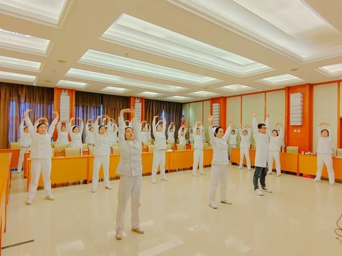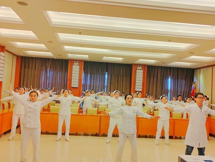 “寓國粹于行,悟古法于心”交流會在傳統健身功法“八段錦”練習中拉開帷幕,與會人員在皮膚科副護士長黃帥的帶領下,躬身感受古法文化的魅力。八段錦發源于兩宋時期,以其獨特的方式調和人體陰陽平衡,疏通全身經絡。讓我們在繁忙的生活中減輕壓力,舒緩身心,從而更好地掌控自己的情緒。