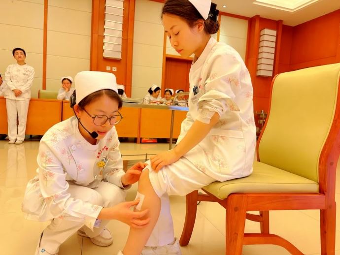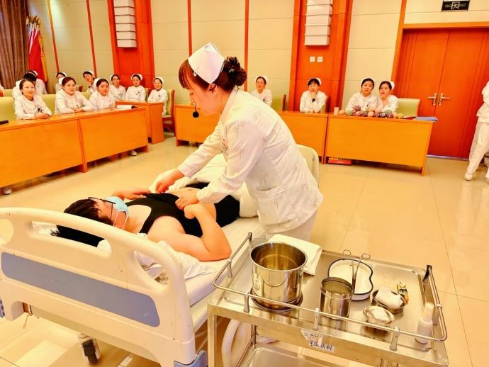 “明其道、觀其妙、精其術”,在細致的理論講解后,由專業組主管護師張絨、劉薇、雷靜分別對平衡火罐、巨灸罐、穴位貼敷及頭部刮痧四項技術進行操作展示。三位老師用通俗易懂的語言、簡潔明了的示范,展示了中醫適宜技術的操作方法和技術要點,深化了大家對中醫適宜技術基礎及臨床應用的認識。