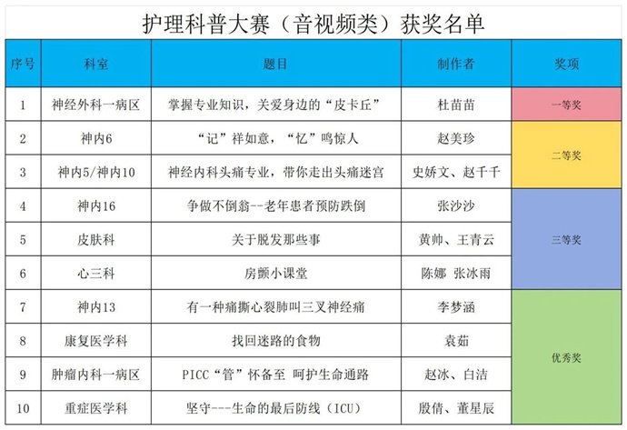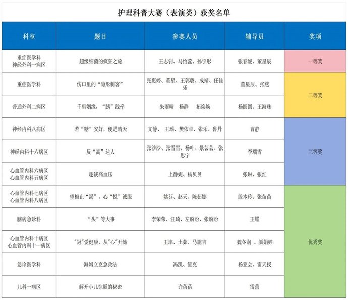 本次護理科普大賽音視頻類、表演類兩個板塊同頻啟動,旨在激發廣大護理人員從事科普工作的積極性,進一步提高護理人員創作科普視頻的技能水平,促進護理學科與科普知識的融合創新。各臨床科室踴躍報名,經過層層篩選,最終19個音視頻類和11個表演類作品入圍決賽。