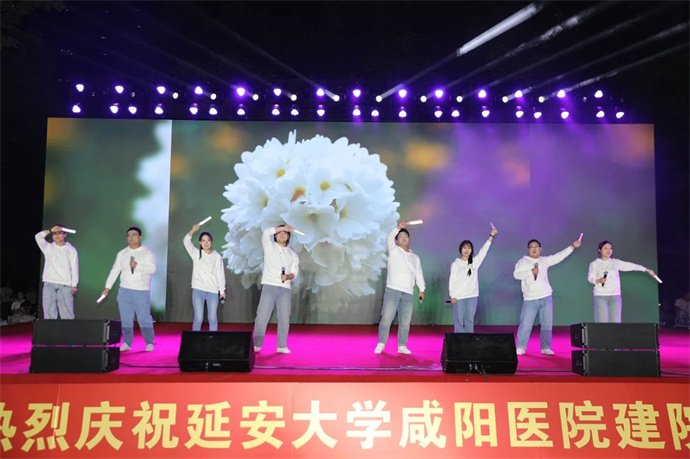 下午19:30,在萬眾期待中,延安大學咸陽醫院75周年慶典晚會在醫院內西側廣場如約舉行,75周年慶典大會與會人員、院內職工、在院患者及周邊群眾兩千余人現場觀看了演出。晚會開始前,精誠醫療集團主席兼延安大學咸陽醫院董事長李衛軍做了題為《七十五載鑄輝煌 共譜華章展未來》的晚會致辭。他強調醫院要在新的歷史起點上,堅持改革創新,拓寬發展思路,為建設“百年名院 醫界豐碑”而努力奮斗。堅持以人民健康為中心的發展理念,加強學科建設,提升診療水平和質量,推動醫院各項事業再上新臺階。要繼續發揚優良傳統和作風,努力將醫院建設成為一所社會認可,政府放心,患者滿意,職工自豪的高水平三級甲等大學附屬醫院。