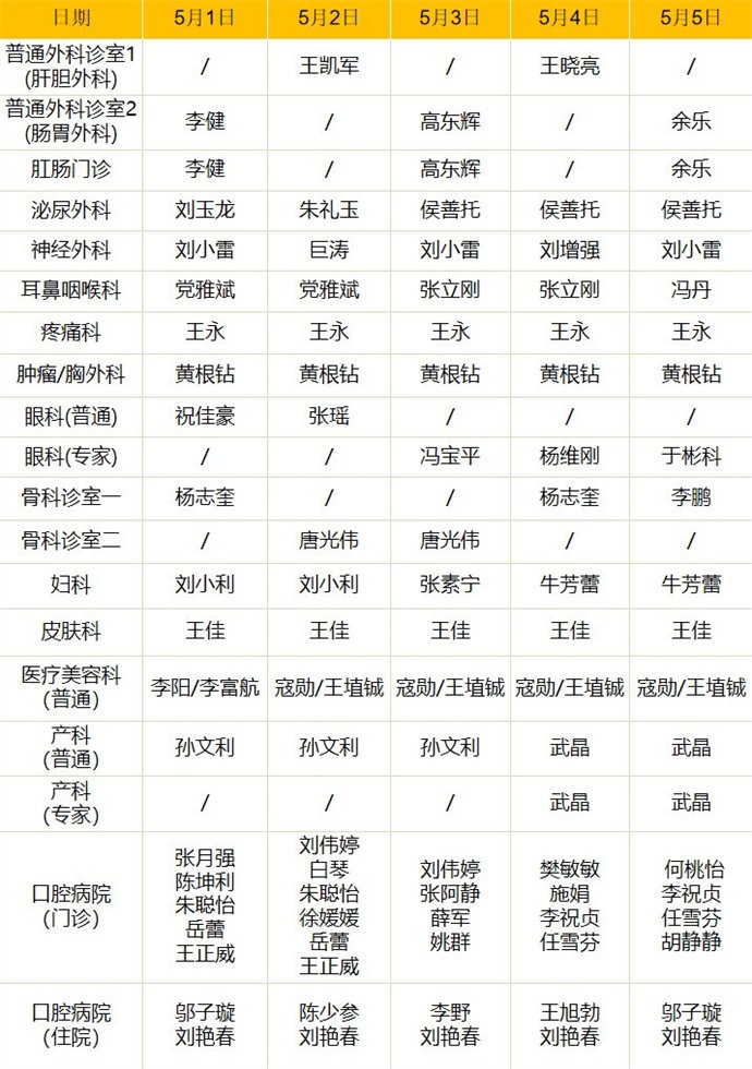 外科病院門(mén)診排班表