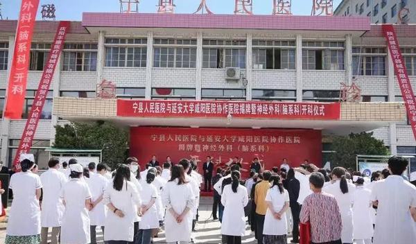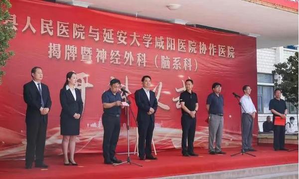 延安大學咸陽醫院與寧縣人民醫院積極籌備協商,于2021年6月18日,寧縣人們醫院與延安大學咸陽醫院協作醫院揭牌暨神經外科(腦系科)開科儀式在寧縣人民醫院舉行。