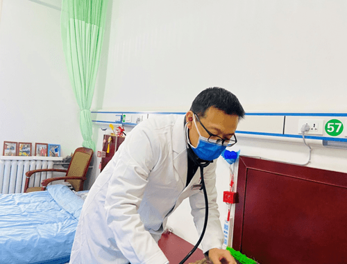 心血管科責任總孟慶魁醫生開展查房巡診活動,為老人提供問診、查體、疾病服務。