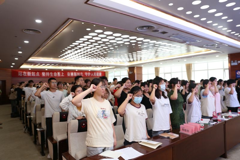 隨后,學(xué)生代表陳凘源進行發(fā)言并帶領(lǐng)全體實習(xí)生進行醫(yī)學(xué)生宣誓。她說:“在即將開始的實習(xí)中,我們將面對真實的患者,他們帶著病痛以及對健康的渴望來到我們面前。每一個病例都是一個挑戰(zhàn),每一次診斷都是一次考驗。我們要以扎實的醫(yī)學(xué)理論為基礎(chǔ),嚴謹?shù)目茖W(xué)態(tài)度為準則,細心觀察、認真分析,努力早日為患者解決病痛的折磨。”