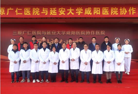 3月3日上午,延安大學(xué)咸陽(yáng)醫(yī)院黨委書(shū)記姚曉峰、宣傳部部長(zhǎng)趙莉、宣傳部科長(zhǎng)趙文章及各科室專家一行,赴三原參加三原廣仁醫(yī)院與延安大學(xué)咸陽(yáng)醫(yī)院協(xié)作揭牌儀式!三原縣縣委常委統(tǒng)戰(zhàn)部、人大、政協(xié)、衛(wèi)健局、民政局、醫(yī)保局、殘聯(lián)、婦聯(lián)等單位及三原廣仁醫(yī)院院長(zhǎng)王輝、延安大學(xué)咸陽(yáng)醫(yī)院流動(dòng)醫(yī)院醫(yī)護(hù)團(tuán)隊(duì)、抗美援朝老兵代表和職工代表出席了儀式。