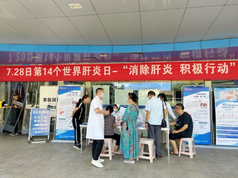 2024年7月28日是第14個(gè)“世界肝炎日”,今年我國(guó)的宣傳主題是“消除肝炎,積極行動(dòng)”。為進(jìn)一步提升全民病毒性肝炎防治及篩查意識(shí),盡早發(fā)現(xiàn),積極治療,同時(shí)最大限度遏制新發(fā)感染,切實(shí)減輕疾病帶來的負(fù)擔(dān),盡早實(shí)現(xiàn)“到2030年消除病毒性肝炎”的戰(zhàn)略目標(biāo)。延安大學(xué)咸陽醫(yī)院感染性疾病科積極響應(yīng)政府號(hào)召,于2024年7月26日,積極組織科室人員,在內(nèi)科樓前開展了豐富多彩的宣傳活動(dòng)。