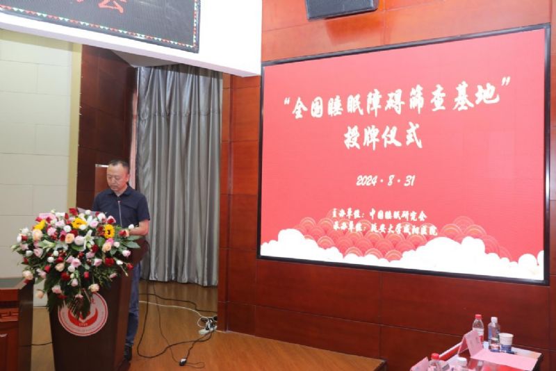 開(kāi)幕式第二個(gè)環(huán)節(jié)由延安大學(xué)咸陽(yáng)醫(yī)院陳青院長(zhǎng)助理主持。中國(guó)睡眠研究會(huì)常務(wù)理事、空軍軍醫(yī)大學(xué)唐都醫(yī)院宿長(zhǎng)軍教授代表中國(guó)睡眠研究會(huì),宣讀延安大學(xué)咸陽(yáng)醫(yī)院睡眠醫(yī)學(xué)團(tuán)隊(duì)獲批“全國(guó)睡眠障礙篩查基地”文件,并向團(tuán)隊(duì)授牌。