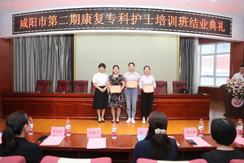 在大家的熱烈掌聲中,楊敏院長助理、胡亞妮主任、宋春蘭總護士長、徐金強總護士長、劉敏護士長分別為培訓班優秀學員、優秀帶教老師、科研能力考核優秀獎、專科理論考核優秀獎、專科技能考核優秀獎等頒發榮譽證書。康復專科護士培訓班班主任劉巧云護士長、趙茹護士長分別為學員頒發結業證書。
