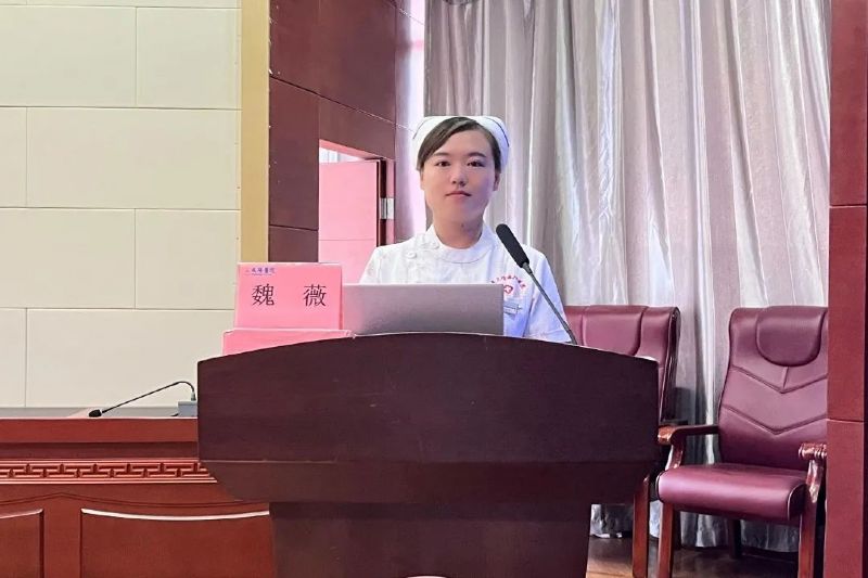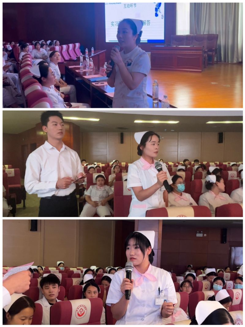 活動第二項,實習生代表王妞妞分享了她的實習心得與收獲,她堅定地表示,將秉持著積極向上的精神風貌、滿腔的熱情與樂觀的心態,全身心地投入到臨床實習的每一個環節中。同時,她承諾將嚴格遵守各項規章制度及操作規范,確保患者及自身的安全。