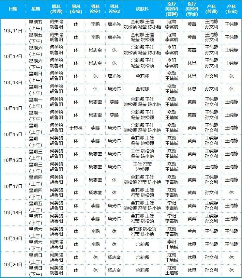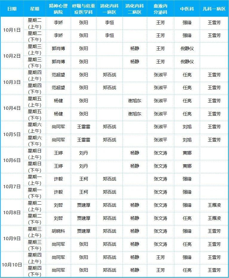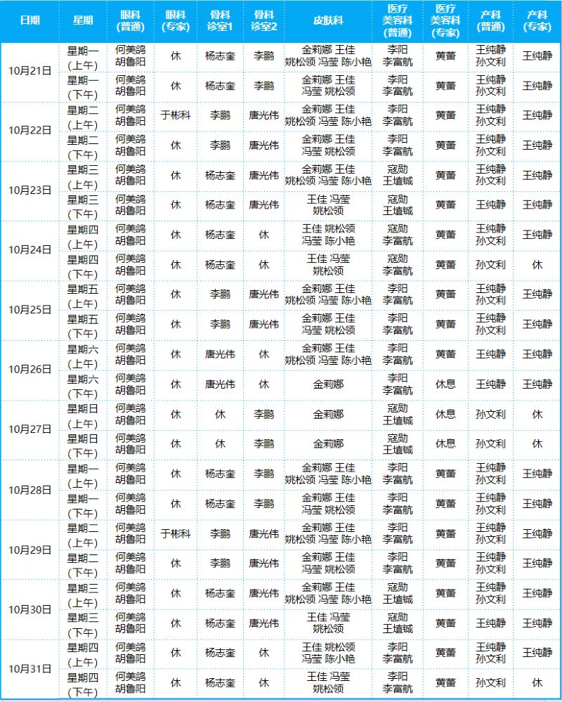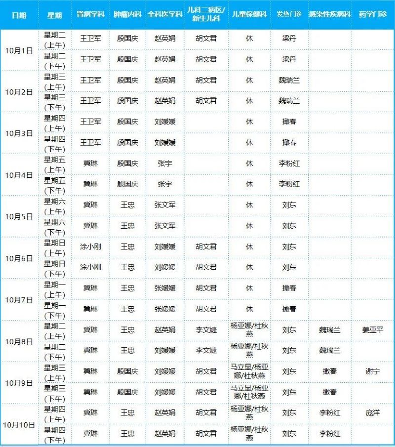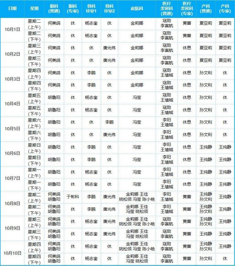 2024年10月份門診排班表