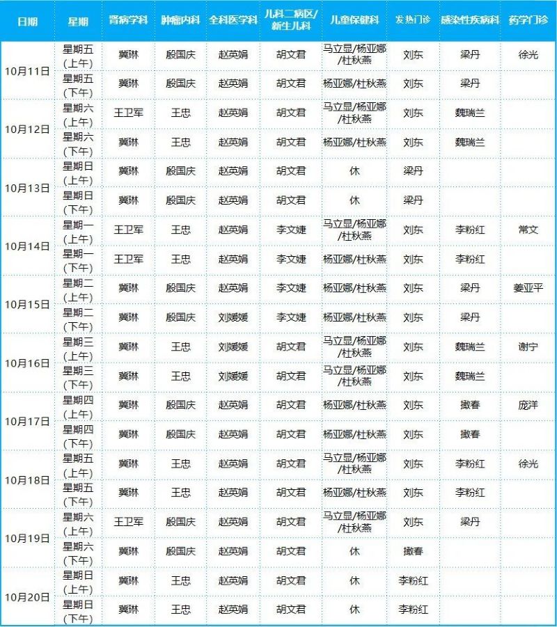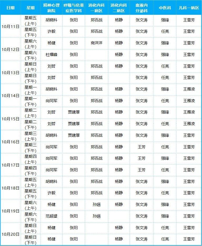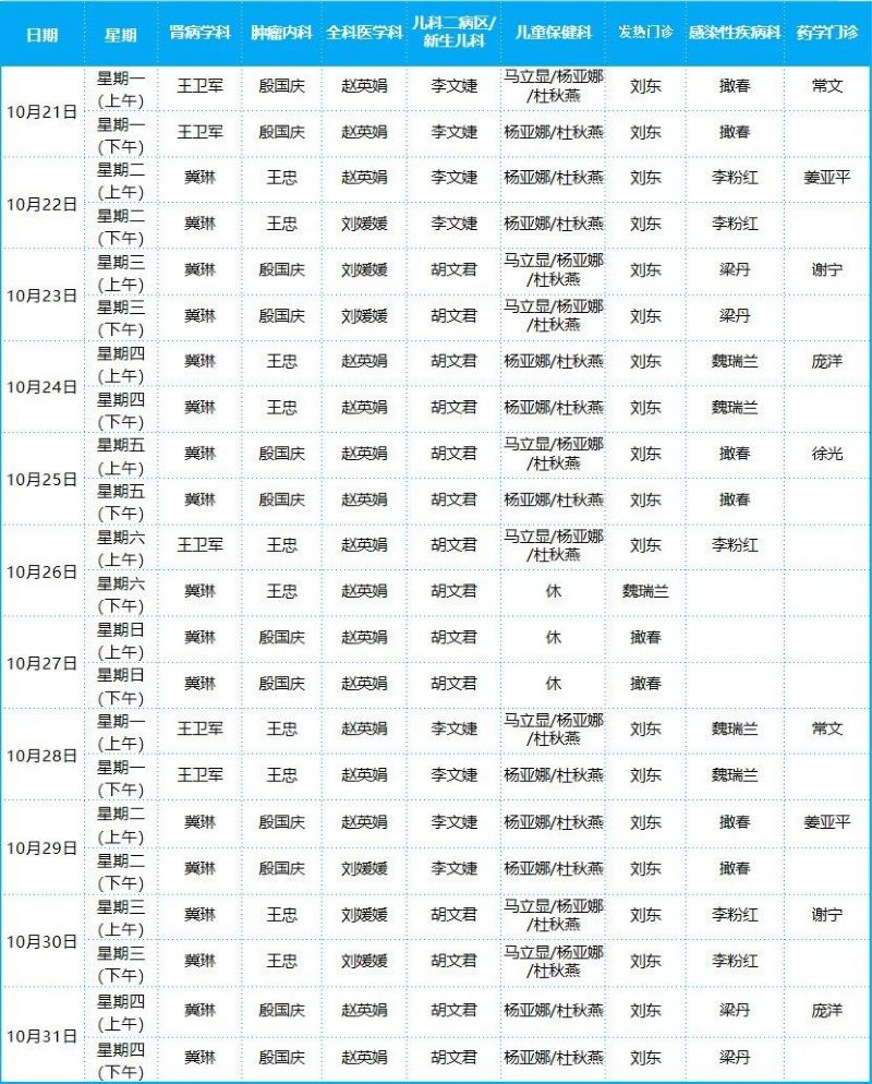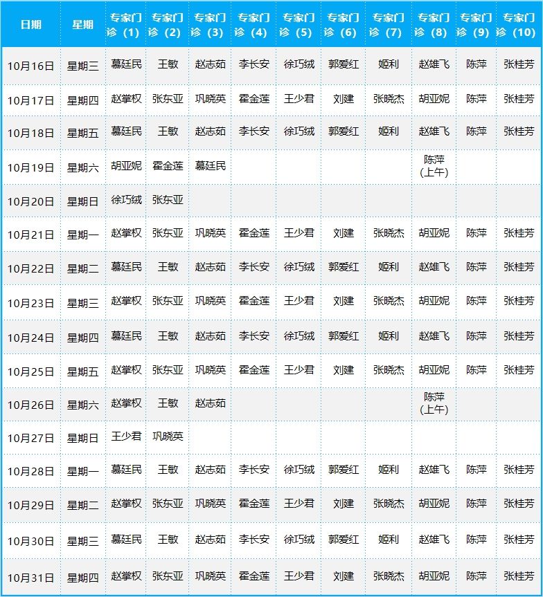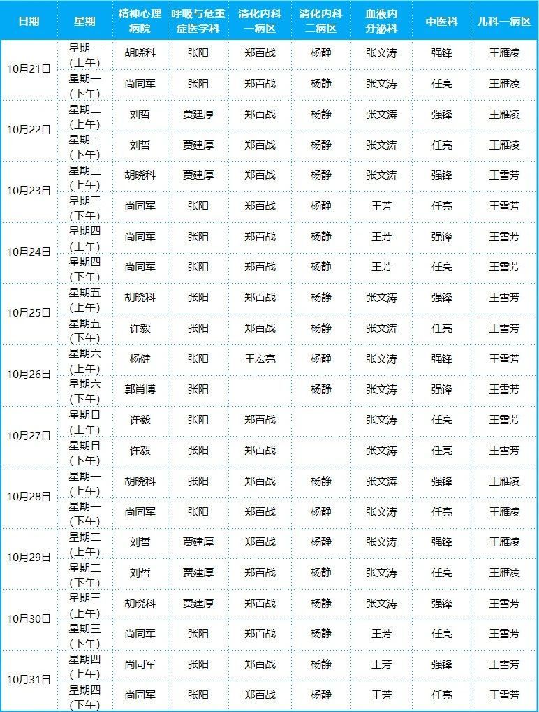 2024年10月份門診排班表