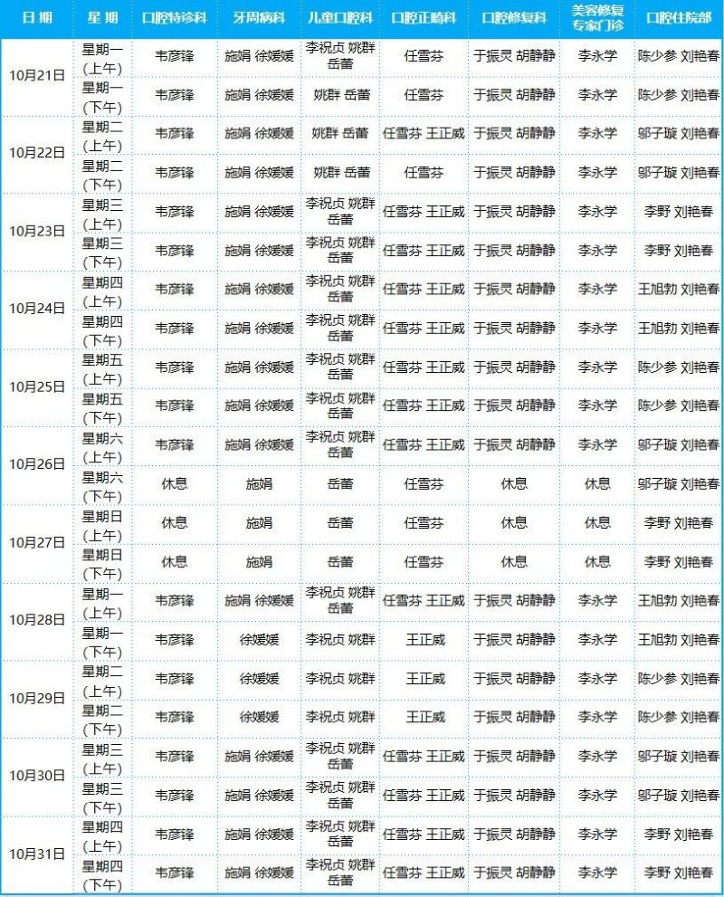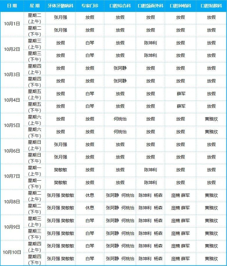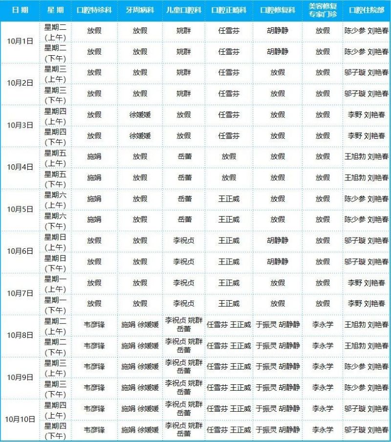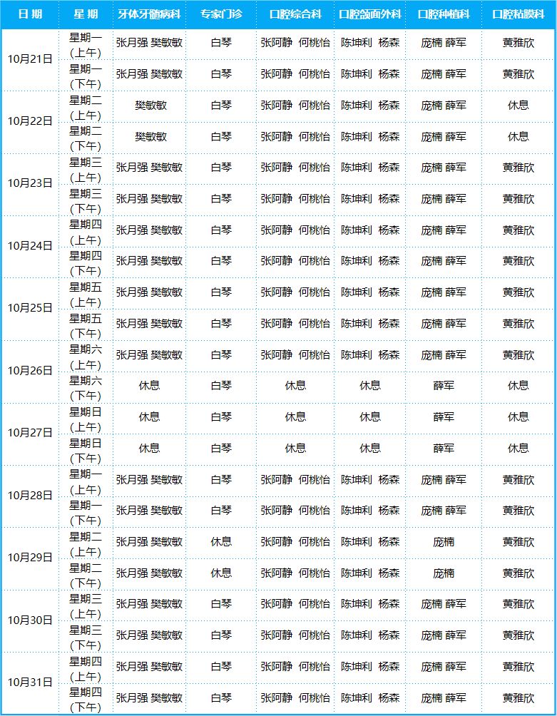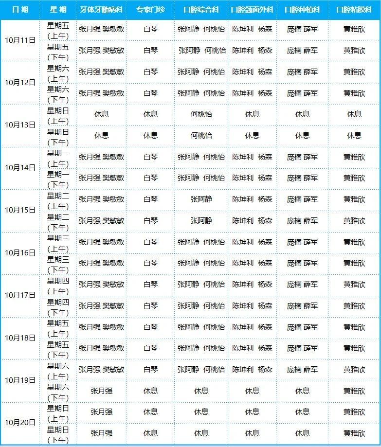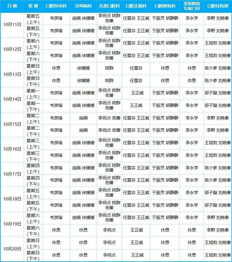 口腔病院門診排班表