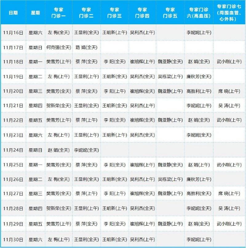 心血管病院門診排班表