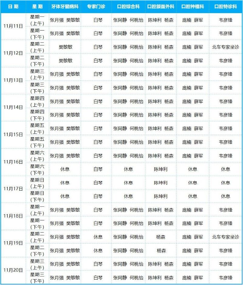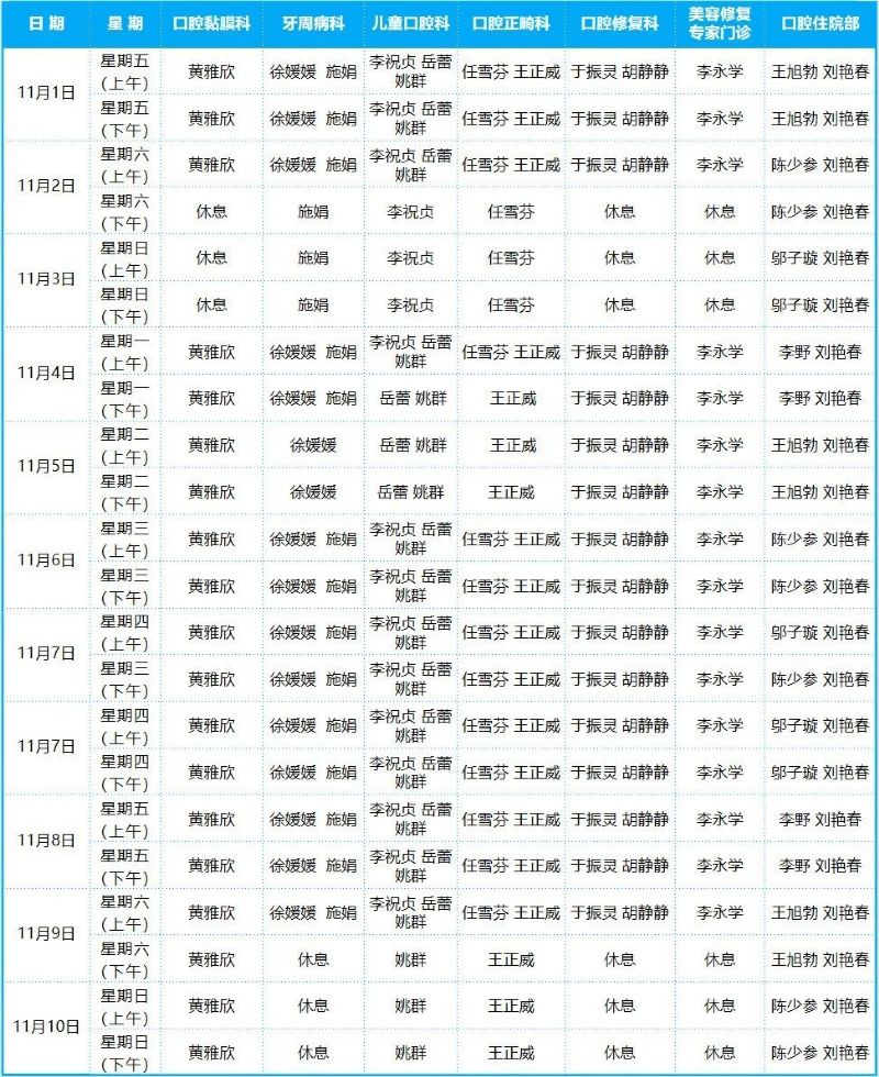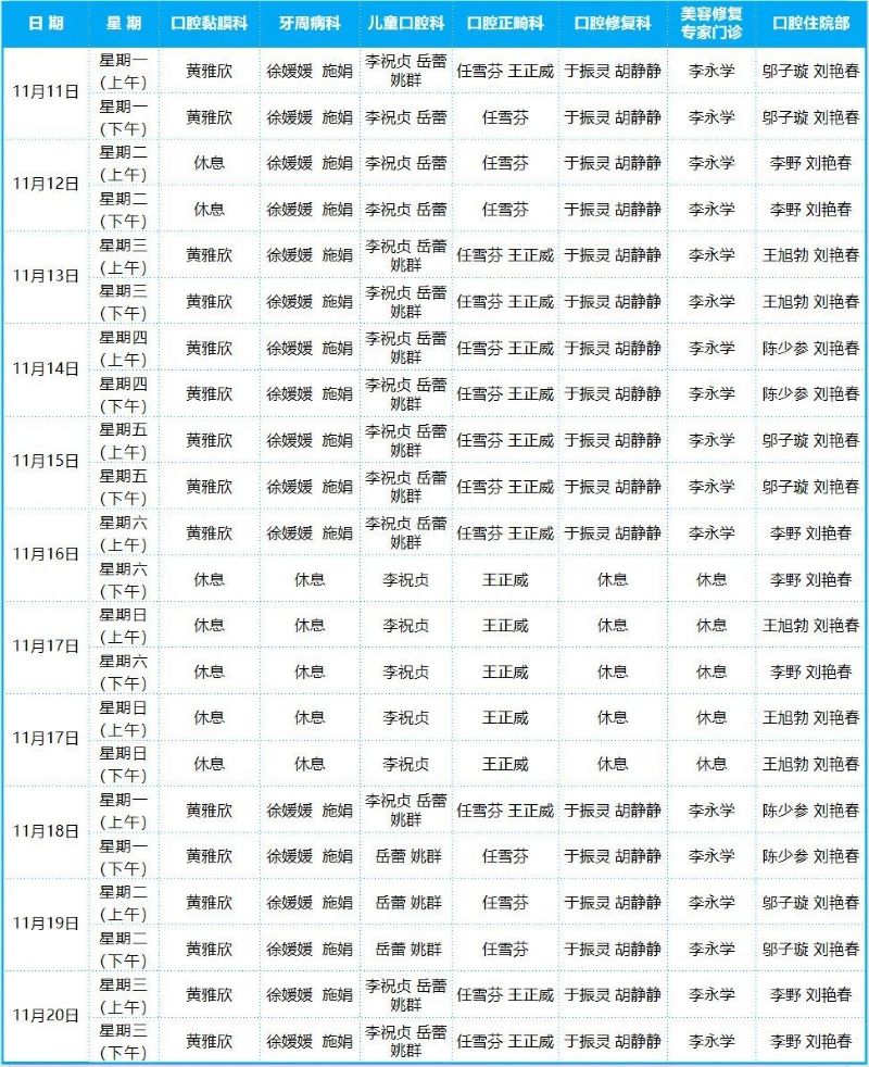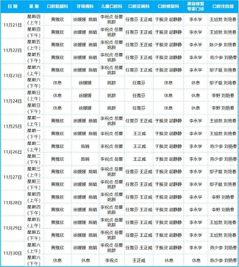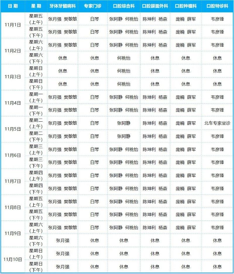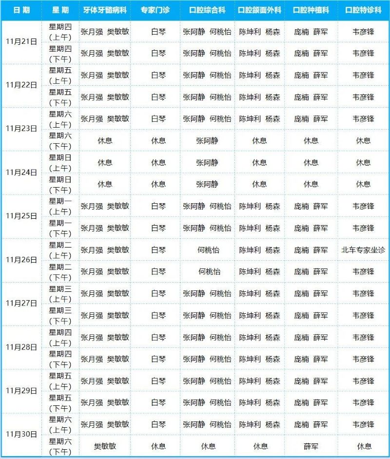 口腔病院門診排班表