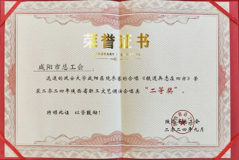 近日,由陜西省總工會(huì)主辦的“中國(guó)夢(mèng) 勞動(dòng)美 新征程 建新功”慶祝中華人民共和國(guó)成立75周年陜西省職工文藝調(diào)演暨合唱決賽專場(chǎng)圓滿落下帷幕。我院憑借深情激昂的合唱《鐵道兵志在四方》,在眾多參賽隊(duì)伍中脫穎而出,榮獲比賽二等獎(jiǎng),展現(xiàn)了我院職工團(tuán)結(jié)向上、奮發(fā)有為的精神風(fēng)貌。