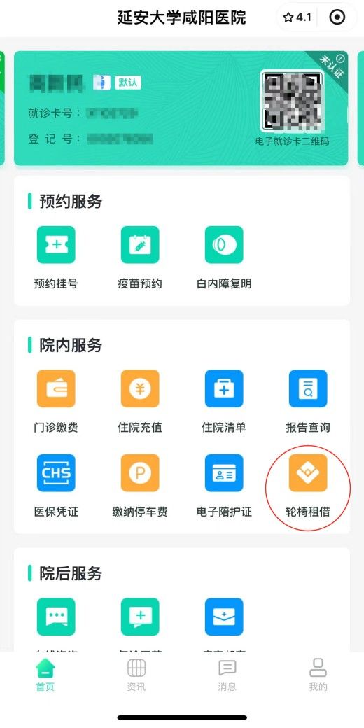 2、點擊輪椅租借、掃描輪椅下方二維碼進行租借