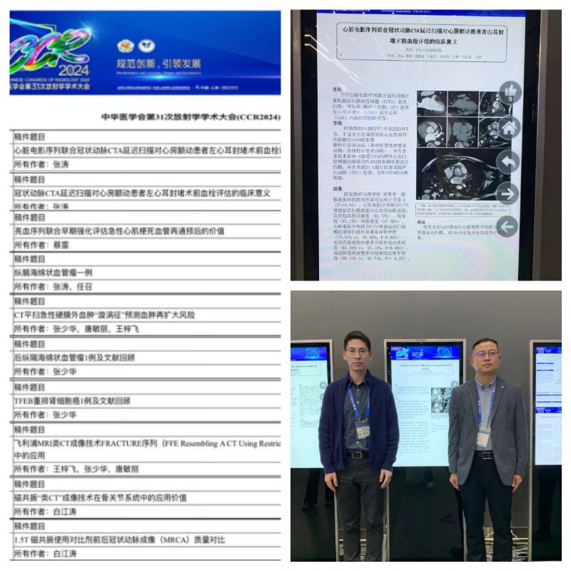 近日(2024年11月15日至17日),我院醫學影像科CT/MRI團隊在中華醫學會第31次放射學學術大會(下稱:“中放”年會)上迎來新的豐收,“中放”年會是國內規模最大、專業性最強、級別最高的放射學學術大會,來自全國各地和海外的放射學領域專家、學者及行業精英齊聚一堂,共同見證了這場學術盛會。此次會議以“規范創新,引領發展”為主題,圍繞醫學影像專業最新進展及學術熱點展開討論,為全國影像同仁提供高水平的學術交流平臺,全面促進影像專業人員醫教、科研綜合水平的提高。