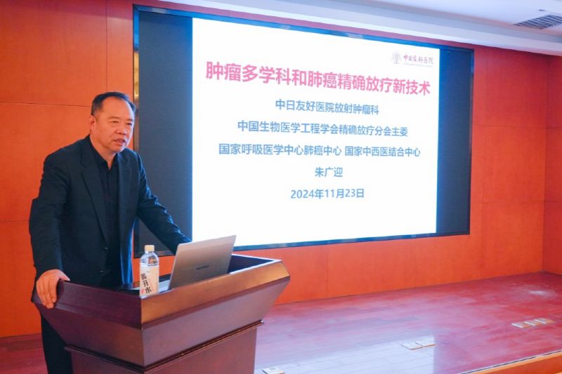 本次學(xué)術(shù)講座由放療科張楊勇副主任主持。腫瘤病院巨濤院長發(fā)表了熱情洋溢的致辭,他對朱廣迎教授和王運來教授的到來表達(dá)了誠摯的謝意和熱烈的歡迎,同時出席本次學(xué)術(shù)講座的有咸陽市中心醫(yī)院楊有文教授,西藏民族大學(xué)附屬醫(yī)院廖和和教授、君蘭醫(yī)療華醫(yī)腫瘤集團(tuán)董事長孫存照先生、君蘭醫(yī)療華醫(yī)腫瘤集團(tuán)程鵬飛經(jīng)理、延安大學(xué)咸陽醫(yī)院腫瘤放療科(兼)腫瘤胸外科苗滿園主任、腫瘤胸外科李偉副主任、腫瘤內(nèi)科一病區(qū)的殷國慶主任、腫瘤內(nèi)科二病區(qū)王忠副主任、呼吸重癥醫(yī)學(xué)科賈建厚教授、放射科CT/MRI室張濤副主任及相關(guān)科室40余人參加了現(xiàn)場會議。