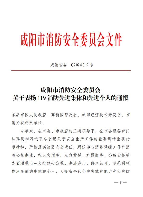 近期,為貫徹習(xí)近平總書記關(guān)于安全生產(chǎn)工作的重要講話重要指示精神,咸陽市委市政府組織咸陽市消防安全委員會(huì)對(duì)全市各機(jī)關(guān)、團(tuán)體、企事業(yè)單位的消防安全工作進(jìn)行綜合考核評(píng)比,對(duì)消防工作突出、成績優(yōu)異、群眾認(rèn)可、示范引領(lǐng)作用顯著的先進(jìn)集體和個(gè)人給予表彰。