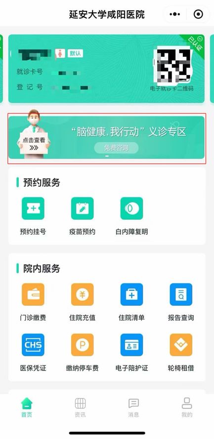 微信識別下方二維碼,即可識別進(jìn)入“延安大學(xué)咸陽醫(yī)院互聯(lián)網(wǎng)醫(yī)院”小程序,注冊后進(jìn)入義診專區(qū)。