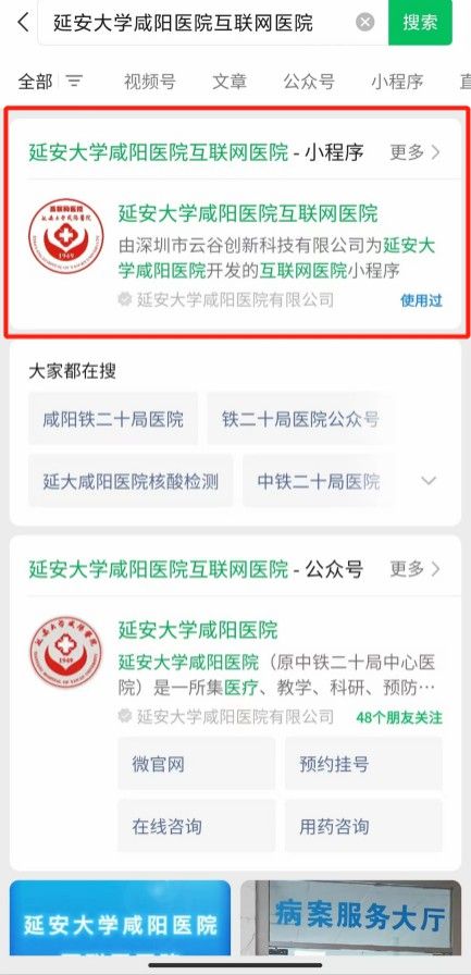 微信搜索延安大學(xué)咸陽醫(yī)院互聯(lián)醫(yī)院,點擊即可進(jìn)入。